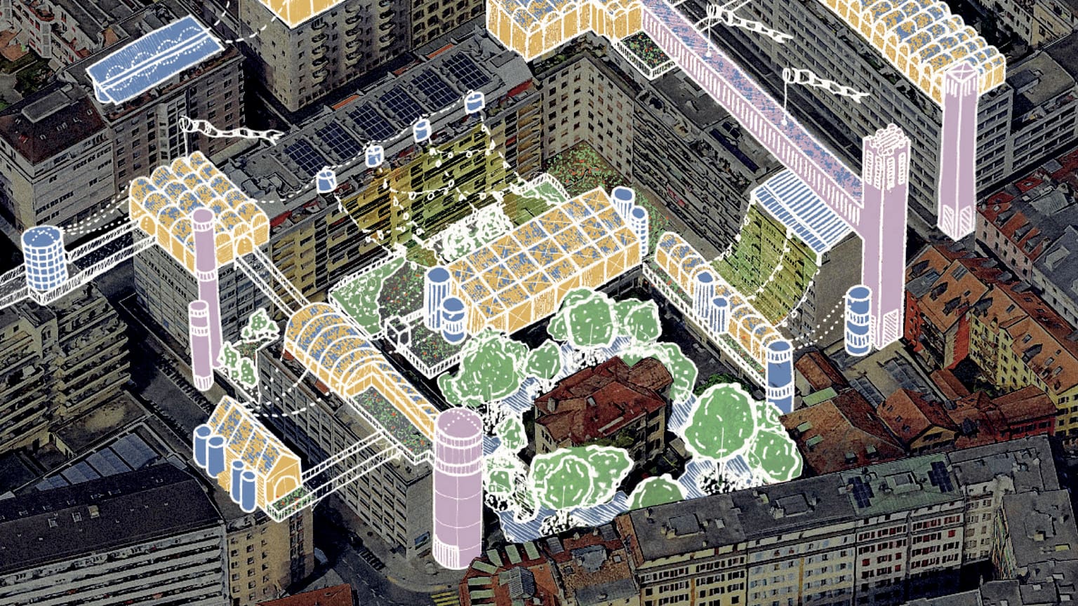 Once on the edge of Geneva’s old city, and now one of its most popular neighborhoods, the southern part of the former municipality of Plainpalais is a mosaic of shapes, eras, colors, and flavors. Dense and centrally located, it must contend with both road traffic and urban heat islands – its main thoroughfare is currently being transformed into a green walkway. How can we create a more peaceful urban environment?
