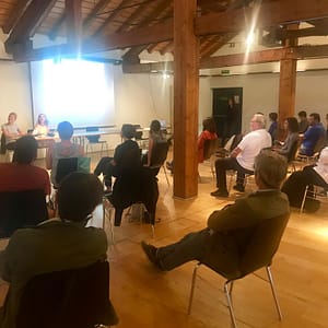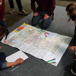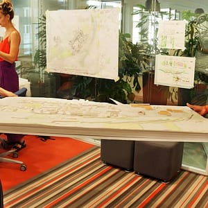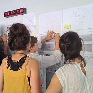 Depuis six ans, le Transition Workshop propose, par le module Design Studio, une intensive session d’atelier de deux semaines sur un quartier en transition, en collaboration avec l’Office de l’urbanisme du Canton de Genève. Plusieurs équipes pluridisciplinaires, composées des participant·es du TW (architectes, urbanistes, paysagistes, ingénieurs, géographes, etc.), élaborent des scénarios de développement au prisme de la transition écologique.