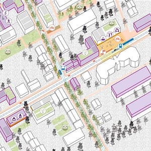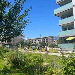 Rythmer l’évolution des quartiers d’habitat, par le renforcement des qualités écologiques du site, la conservation de son énergie grise, la construction avec des matériaux décarbonés, l’introduction de mobilités douces et l’engagement citoyen.