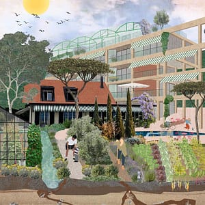 Projeter la ville sur la ville par des stratégies de transition alliant formes urbaines, réemploi et matériaux biosourcés, trames vertes, énergies renouvelables, mobilités alternatives, équipements partagés et agriculture urbaine.