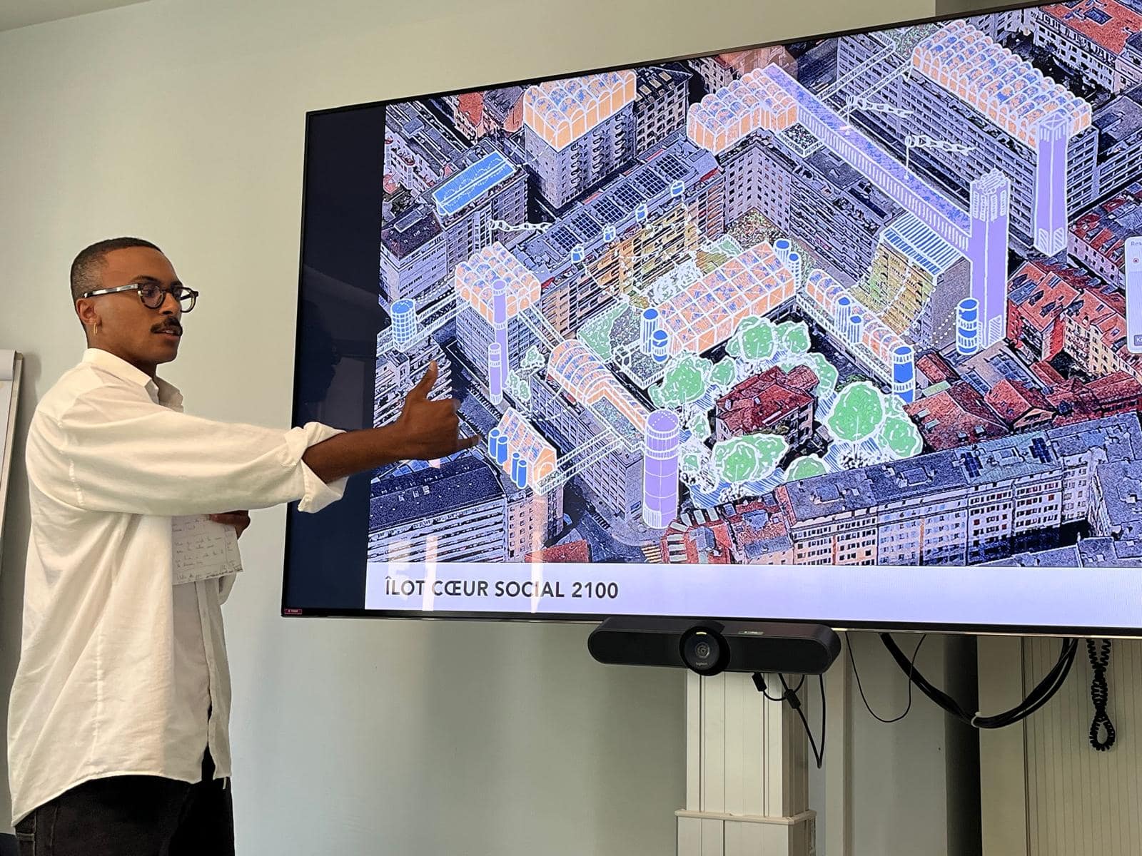 Depuis six ans, le Transition Workshop propose, par le module Design Studio, une intensive session d’atelier de deux semaines sur un quartier en transition, en collaboration avec l’Office de l’urbanisme du Canton de Genève. Plusieurs équipes pluridisciplinaires, composées des participant·es du TW (architectes, urbanistes, paysagistes, ingénieurs, géographes, etc.), élaborent des scénarios de développement au prisme de la transition écologique.